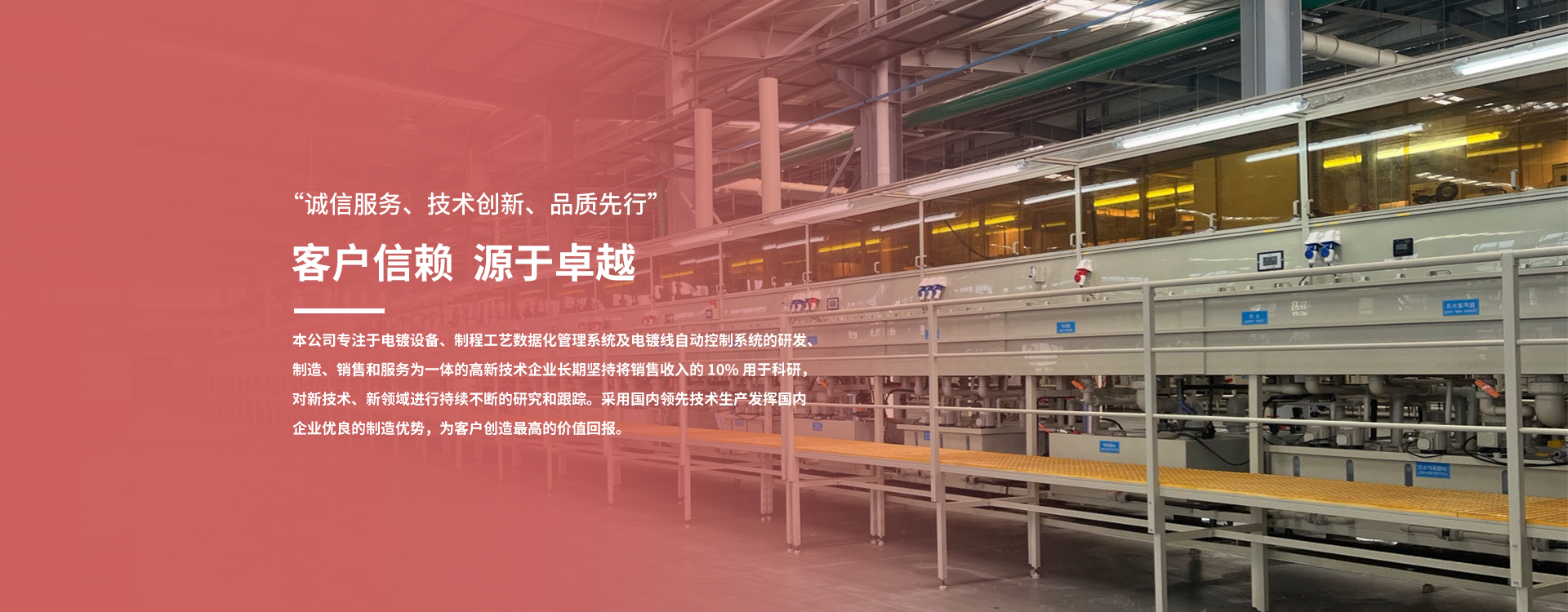 昆山阿爾瑪電子設備有限公司主要經營:電鍍精密高頻開關電源,電鍍雙脈沖電源,電鍍超聲波清洗設備,電鍍線體設計制造,電鍍精密點線鍍治具設計制造等產品。 公司專注于電鍍設備、制程工藝數據化管理系統及電鍍線自動控制系統的研發、制造、銷售和服務為一體的高新技術企業。長期堅持將銷售收入的 10% 用于科研,對新技術、新領域進行持續不斷的研究和跟蹤。采用國內領先技術生產,發揮國內企...